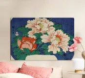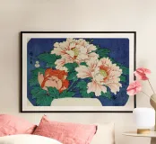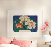 Hiroshige - Three Stems of Peonies on a Blue Background poster con telaio in legno