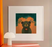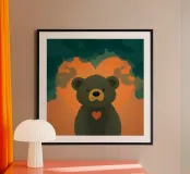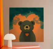 Illustrazione di orso carino con forma di cuore in una foresta poster