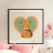 Illustrazione di un simpatico orsetto circondato da forme di cuore in un morbido poster con telaio in alluminio