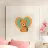 Illustrazione di un simpatico orsetto circondato da forme di cuore in un morbido poster con telaio in legno