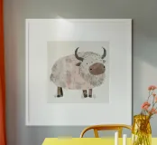 Illustrazione di uno yak con grandi corna poster con telaio in legno