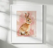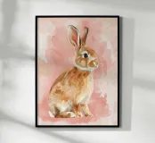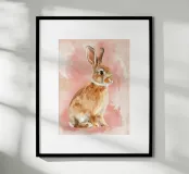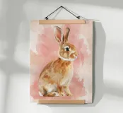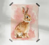 Incantevole raffigurazione di un coniglio seduto su un morbido sfondo pastello. poster