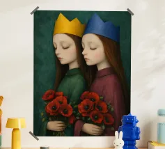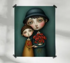 Ingrid, with the winter in her eyes, Holds a poppy, crimson against the grey skies. A cat, white as snow, rests upon her head, While unspoken sorrows in her heart are bred. The world sleeps in hues of petrol and rust, A silent promise whispered in the dust. She breathes the cold, a fragile, fleeting sigh, As dormant dreams drift quietly by.