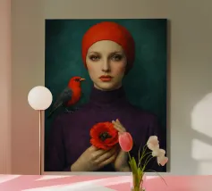 Ingrid holds tomorrow in her quiet hands, a fragile dream that no one understands. The future hums with promises untrue, yet still she waits, as hopeful hearts will do. Titty sings beside her, small and bright, a red reminder in the fading light. And in her eyes, so distant, cold, and deep, live all the wishes life refused to keep.