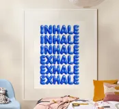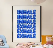 Un design tipografico rilassante con le parole "Inhale Exhale". Pulito, minimale e bilanciato, ricorda di respirare profondamente e di essere presenti.