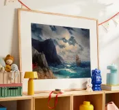 Passing Ship on a Moonlit Night di Ivan Aivazovsky cattura la serenità e il mistero del mare al chiaro di luna. Una singola imbarcazione scivola sulle acque calme, immersa nel bagliore argenteo della luna, creando un contrasto poetico con le sue scene di tempesta più turbolente. Questo dipinto d'atmosfera è perfetto per gli amanti dei paesaggi marini, della storia della nautica o per chiunque sia alla ricerca di un'opera d'arte tranquilla ma drammatica per arricchire il proprio arredamento.ivan aivazovsky, nave di passaggio in una notte di luna, arte marina, paesaggio marino al chiaro di luna, paesaggio marino romantico, dipinto marittimo, nave a vela, mare calmo, cielo notturno sull'acqua, arredamento nautico, oceano a
