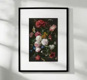 Jan Davidsz. de Heem Natura morta con fiori in un vaso di vetro poster con telaio in alluminio