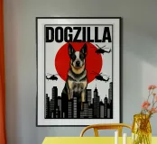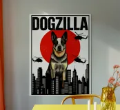 Dogzilla giapponese, divertente Corg Art Design poster con telaio in legno