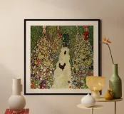Klimt - Garden Path with Hens poster con telaio in plastica