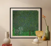 Klimt - Rose Bushes under Trees poster con telaio in alluminio