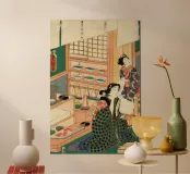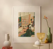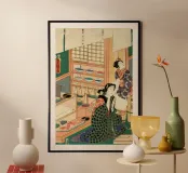 Kunisada - The Class of the Craftsmen poster con telaio in legno