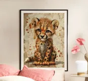 La giocosità dei cuccioli di ghepardo poster con telaio in legno