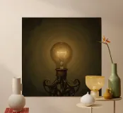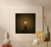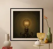 Lampadina illuminata su supporto in metallo poster con telaio in legno