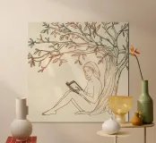 Leggere sotto un albero in una giornata di sole con la natura circostante poster con telaio in plastica