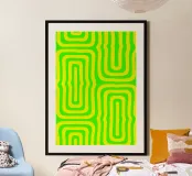 Linea verde-gialla Arte astratta poster con telaio in plastica