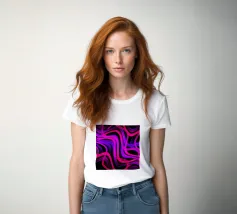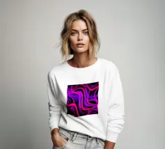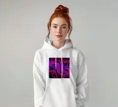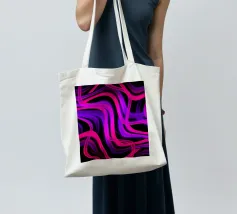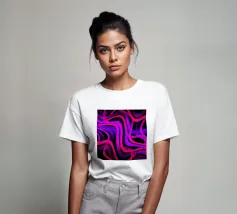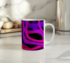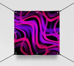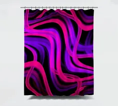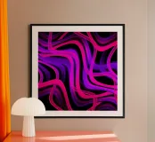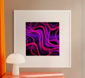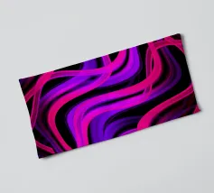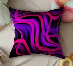 Purple and pink neon lines in a wave pattern on a black background