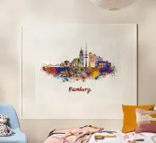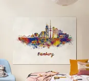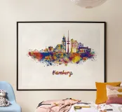 Lo skyline di Amburgo in acquerello poster con telaio in legno