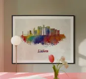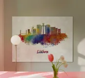 Lo skyline di Lisbona in acquerello poster con telaio in alluminio