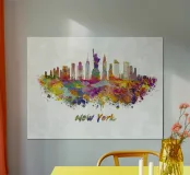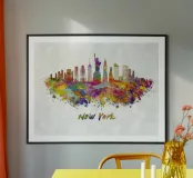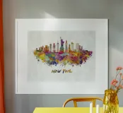 Lo skyline di New York in acquerello poster con telaio in alluminio