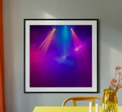 Luci di scena colorate illuminano un'atmosfera nebbiosa poster