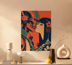 Questa scena surreale combina film noir e fantascienza. Una donna in abito rosso abbraccia un robot retrò in un interno arredato in stile classico: Edward Hopper incontra Fritz Lang. Lo stile pittorico iperrealistico e la calda combinazione di colori creano l'intimità nostalgica del realismo americano, mentre il tema solleva questioni assolutamente contemporanee. Quest'opera concettuale esplora il rapporto uomo-macchina con ironia poetica. Perfetto per chi apprezza l'estetica cinematografica, la profondità filosofica e la freddezza retrofuturistica.
