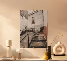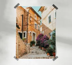 La foto mostra una scala in pietra mediterranea a Maiorca. Il villaggio di Fornalutx è considerato uno dei più belli della Spagna! Mi piace sempre andarci e passeggiare con la mia macchina fotografica. Questo poster è un must per ogni fan di Maiorca!