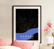 Mappa della città di Dundee Regno Unito nero e oro poster