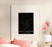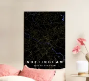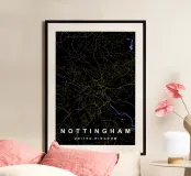 Mappa della città di Nottingham Regno Unito nero e oro poster