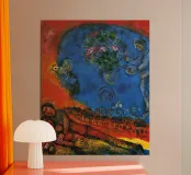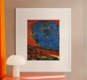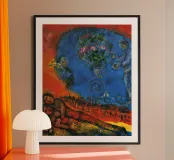 Marc Chagall Coppia su sfondo rosso poster con telaio in plastica