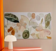 Un arioso paesaggio astratto ispirato al flusso naturale delle coste e delle sabbie mobili. Le morbide tonalità della terra, i verdi tenui e le fluide linee bianche evocano un senso di brezza e di spazio aperto. Perfetto per interni minimalisti, costieri o moderni e organici.