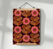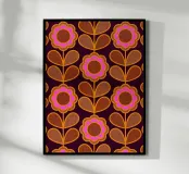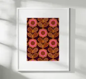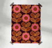 Fate una dichiarazione con questo audace motivo floreale mid-mod. Margherite astratte su steli frondosi sono reimmaginate in uno stile grafico retrò, con accenti rosa, marrone terra e ocra su uno sfondo viola intenso.
