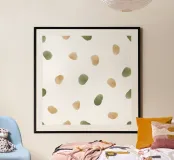 Questo motivo acquerellato minimalista presenta forme organiche simili a ciottoli delicatamente sparse in caldi toni beige e verde oliva tenue. La texture dipinta a mano e l'arioso sfondo bianco creano un'estetica calma e moderna ispirata alla natura e alla semplicità scandinava. Perfetto per interni contemporanei, questo design aggiunge un carattere sottile senza ingombrare visivamente. Ideale per soggiorni, camere da letto, uffici e pareti di gallerie eleganti che cercano un look equilibrato e naturale.