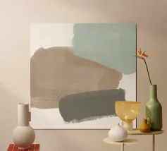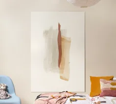 Arte astratta moderna con forme geometriche e organiche combinate con linee e texture in uno stile retrò di tendenza con toni giallo ocra, marrone e grigio. Questa serie si adatta bene a vari stili abitativi come il design, il retrò, il minimalismo, l'industria, gli interni eclettici. Adatto per studio, sala d'attesa, ingresso, soggiorno o camera da letto.