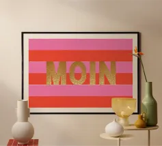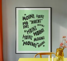 MOIN MOIN MOIN - Saluto della Germania del Nord in un design moderno poster con telaio in alluminio