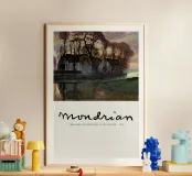 Mondrian – Signed Farm in the Evening poster con telaio in alluminio