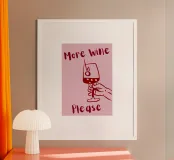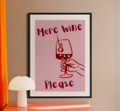 More Wine Please Illustrazione minimale in rosso e rosa poster