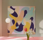 Add a burst of energy and creativity to your space with this colorful geometric abstract art print. Featuring a dynamic mix of bold shapes and a vibrant multicolored palette, this modern design brings movement, joy, and visual interest to any room.