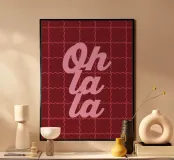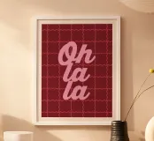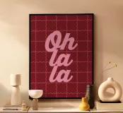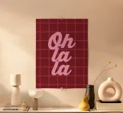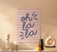 Fate una dichiarazione con questa audace e divertente citazione "Oh la la". Una vibrante tipografia su un vivace e moderno sfondo a scacchi.