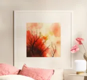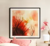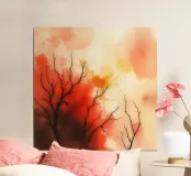 paesaggio autunnale con spruzzi di colore, rami di alberi spogli poster con telaio in legno