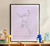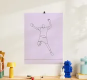 Pallamano - Line art minimalista poster con telaio in alluminio