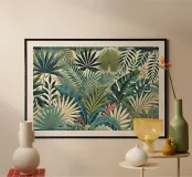 Paradiso delle foglie esotiche poster con telaio in legno