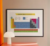 Questa elegante stampa artistica della tavola periodica degli elementi porterà un tocco scientifico e moderno a qualsiasi ambiente. Realizzata con una cornice in legno di alta qualità, è perfetta per l'ufficio, lo studio o la camera dei ragazzi.