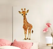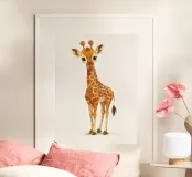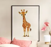 Personaggio di giraffa in piedi con espressione curiosa poster con telaio in alluminio