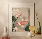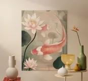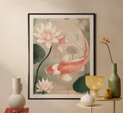 Pesce koi in stile giapponese in rosa scuro poster