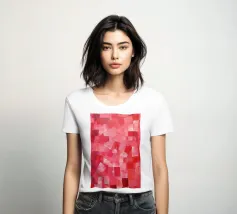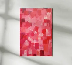 Una vibrante composizione astratta con forme geometriche sovrapposte in varie tonalità di rosso e rosa. I dettagli delle pennellate creano profondità e dinamismo, perfetti per gli appassionati di arte moderna.