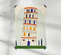 Minimalist Italy travel design with the famous leaning tower of Pisa. Typical Italian motif. Decorative gift idea for anyone who loves travelling to Pisa and Italy in general.