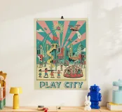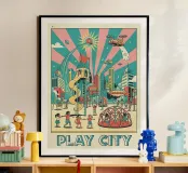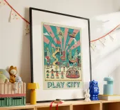 For children's bedrooms, illustrated and drawn poster depicting the playground.