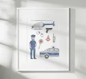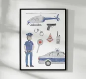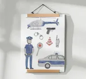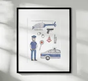 Für begeisterte Polizisten: Liebevoll illustrierte Polizei-Szenerie. Handgemalt mit Aquarellfarben und viel Herz.