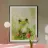 Rana verde seduta sull'erba con espressione allegra poster con telaio in alluminio