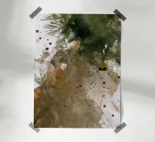 Le sfumature di oliva, umbro e nero confluiscono l'una nell'altra, evocando gli aghi di pino e le trame del suolo della foresta. La stratificazione organica e gli schizzi simili all'inchiostro creano un'astrazione lunatica che cattura l'atmosfera della terra umida e dell'ombra del bosco.